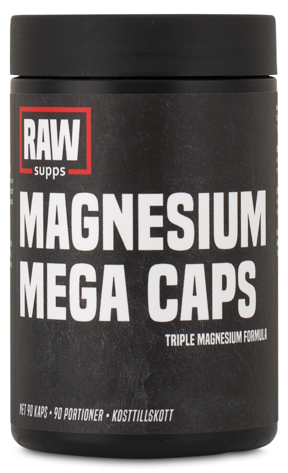RAW Magnesium Mega Caps on tehokas magnesiumlisäravinne niille, jotka haluavat täydellistä palautumista raskaan harjoittelun jälkeen. Magnesium on tärkeä kivennäisaine elimistössä – sitä tarvitaan saavuttamaan tavoitellut tulokset. Magnesium on elintärkeää lihasten ja proteiinisynteesin normaalille toiminnalle, mikä on korvaamatonta niille, jotka harjoittelevat ahkerasti. Se myös torjuu väsymystä ja uupumusta ja pitää elektrolyyttitasapainon, hermoston ja energian tuotannon kurissa. RAW Magnesium Mega Caps tarjoaa sinulle magnesiumia kolmesta erinomaisesta lähteestä, jotka imeytyvät tehokkaasti kehossa: magnesiumglysinaatti, magnesiumtauraatti ja magnesiumsitraatti.