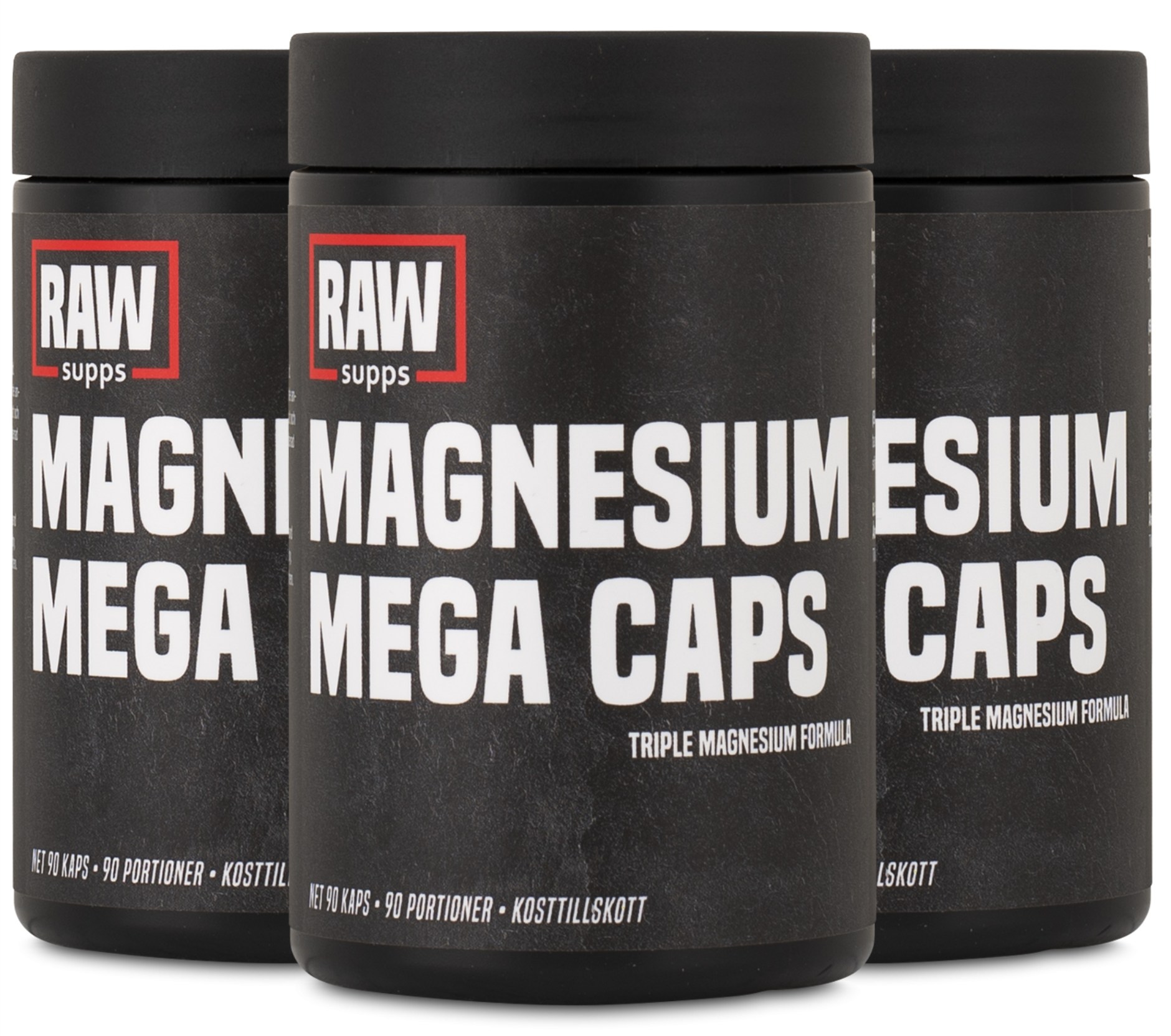 RAW Magnesium Mega Caps on tehokas magnesiumlisäravinne niille, jotka haluavat täydellistä palautumista raskaan harjoittelun jälkeen. Magnesium on tärkeä kivennäisaine elimistössä – sitä tarvitaan saavuttamaan tavoitellut tulokset. Magnesium on elintärkeää lihasten ja proteiinisynteesin normaalille toiminnalle, mikä on korvaamatonta niille, jotka harjoittelevat ahkerasti. Se myös torjuu väsymystä ja uupumusta ja pitää elektrolyyttitasapainon, hermoston ja energian tuotannon kurissa. RAW Magnesium Mega Caps tarjoaa sinulle magnesiumia kolmesta erinomaisesta lähteestä, jotka imeytyvät tehokkaasti kehossa: magnesiumglysinaatti, magnesiumtauraatti ja magnesiumsitraatti.