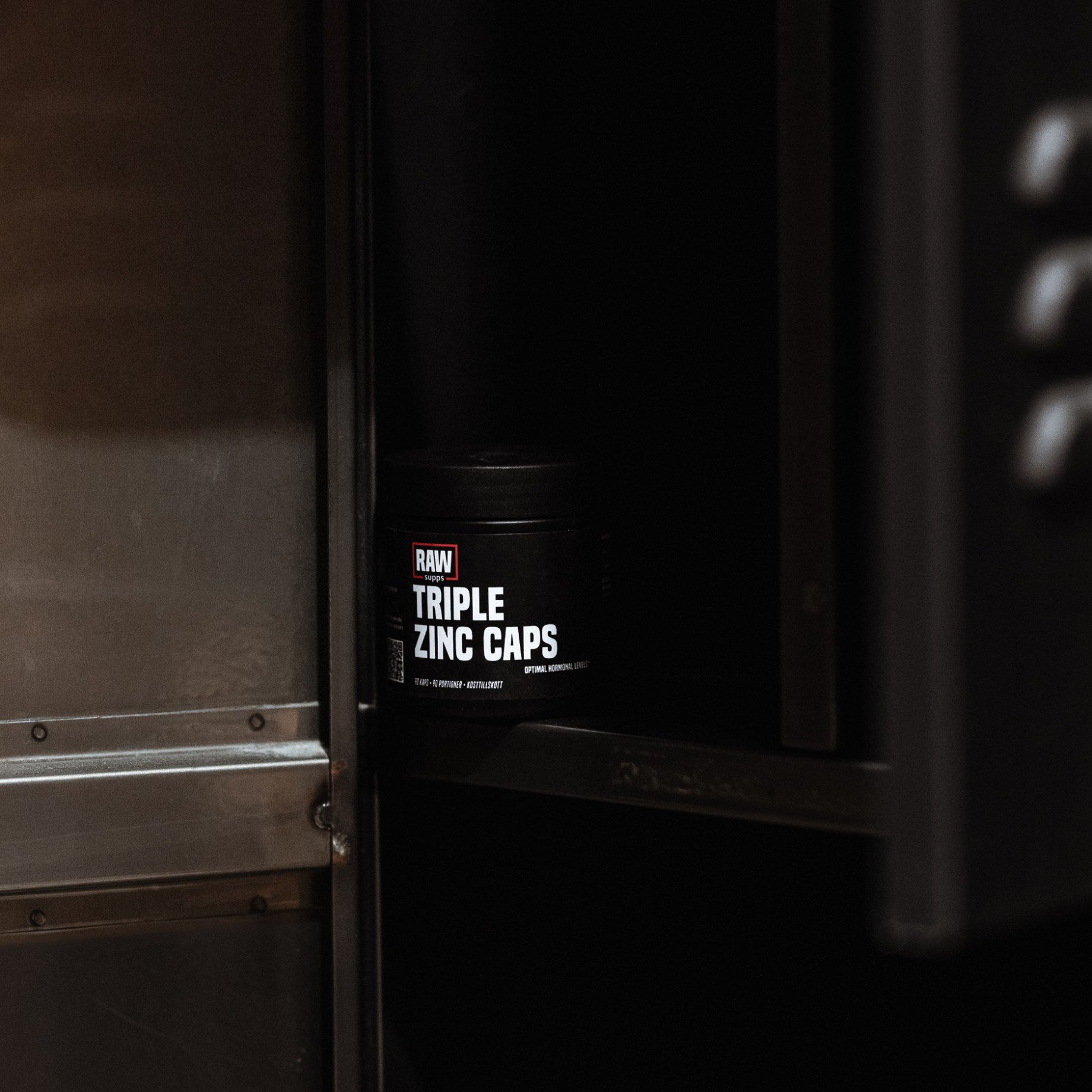 Sinkki on tärkeä normaalin miessukupuolihormoni testosteronin tason ylläpitämisessä veressä. Testosteroni on tärkeä sinulle, joka haluat suoriutua hyvin ja rakentaa lihaksiasi maksimaalisesti. Lisäksi korkean intensiteetin harjoittelu voi vaikuttaa elimistön kortisolitasoon, hormoniin, joka puolestaan voi vaikuttaa testosteroniin. Tämä vaikuttaa kehon kykyyn ylläpitää ja rakentaa lihaksia. RAW Triple Zinc Caps auttaa ylläpitämään normaaleja testosteronitasoja ja näin optimoimaan tuloksiasi!