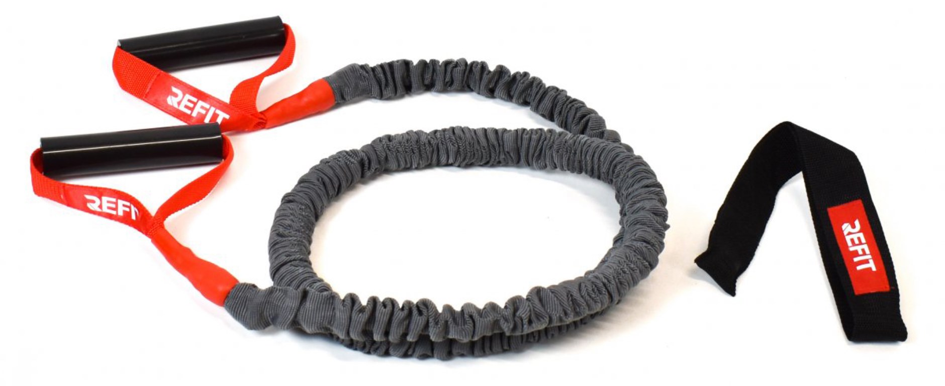 Refit Premium Power Tube on trikootettu kuminauha, jossa on kestävät kahvat. Yläpeitteen ansiosta nauha on suojattu kulumiselta, joten se on täydellinen ulkotreeniin. Sitä voi myös käyttää sisällä, sillä mukana tulee ovistopperi, joka mahdollistaa tehokkaamman kotitreenin.