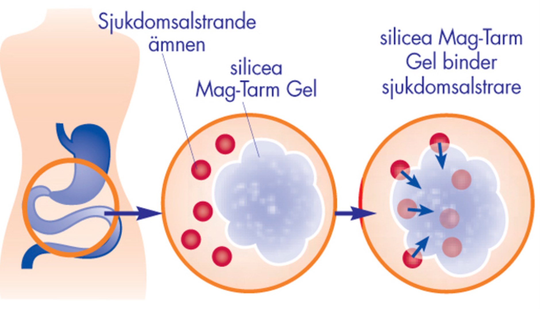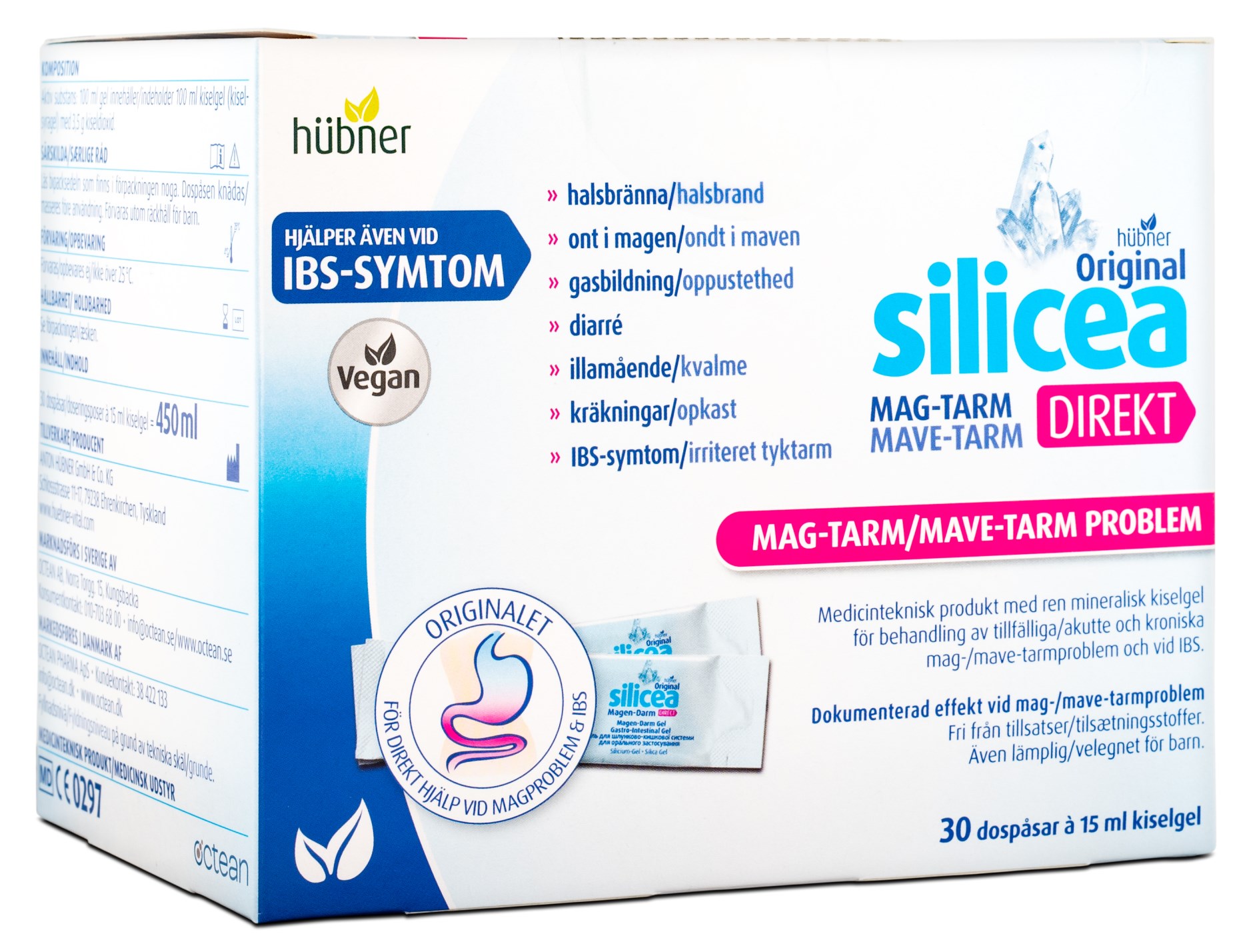 Silicea Mag Tarm Direkt auttaa, kun sinulla on ongelmia turvonneen tai ilmavaivaisen vatsan kanssa. Jos koet usein vatsan levottomuutta tai suolisto-ongelmia, Silicea Mag Tarm voi tarjota helpotusta. Silicea Mag Tarm Direkt sisältää piigeeliä hienojakoisena piikivesineenä, joka yhdessä veden ja hapen kanssa vaikuttaa positiivisesti ilmavaivaan. Geelillä on sitomiskyky, ja siten se sitoo kaasuja ja muita aineita vatsassa ja suolistoissa. Piigeelillä on myös suojaava vaikutus limakalvoihin ja se auttaa lievittämään erilaisia vatsa- ja suolistovaivoja, kuten IBS:ää ja närästystä. Pussit ovat pieniä ja käteviä ottaa mukaan matkalle ja niitä voivat käyttää myös lapset.