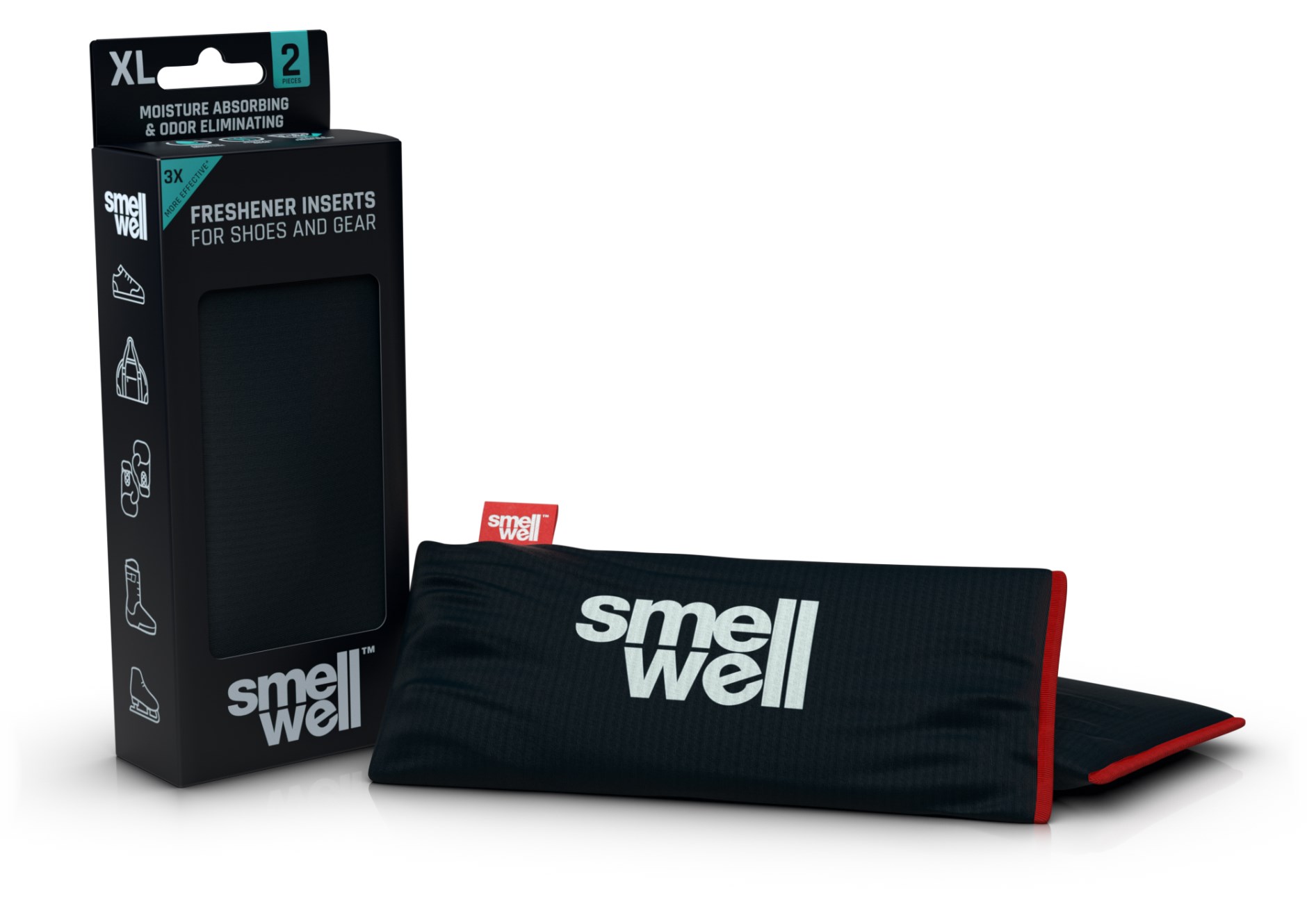 SmellWell Active XL ovat tuoksupusseja, jotka pitävät kenkäsi, vaatteesi, laukkusi ja urheiluvarusteesi raikkaina pidempään. Nämä tuoksupussit ovat askel edellä ja kehittyneempi versio SmellWell Active -tuotteesta. Ne absorboivat kosteutta ja pahaa hajua erittäin tehokkaasti ja niiden kestoikä on jopa 6 kuukautta päivittäisessä käytössä. On suositeltavaa laittaa SmellWell pusseja kenkiisi yön ajaksi, jotta voit astua raikkaisiin kenkiin aamulla. Pussit sopivat myös hyvin laitettaviksi esimerkiksi treenikassiin, nyrkkeilyhanskoihin, jalkapallokenkiin, lenkkikenkiin tai vaikka monoihin. Ne ovat testattu ympäristön ja kuluttajan turvallisuuden varmistamiseksi, eivätkä sisällä bakteereja tappavia aineita. Kaikilla pusseilla on sama ihana tuoksu, mutta ne ovat saatavilla eri designeissa.