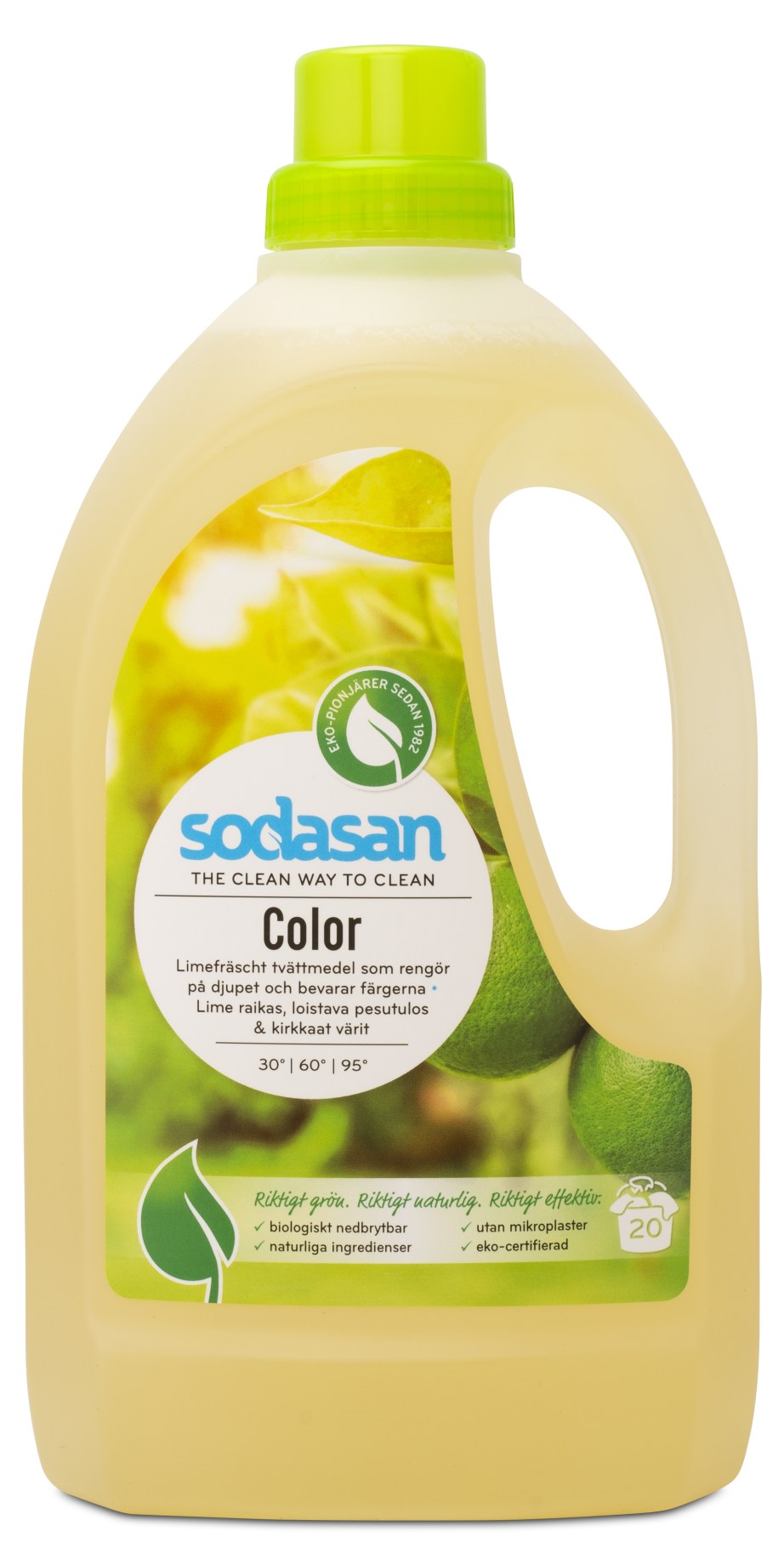 Sodasan Pesuaine Lime sisältää raikkaan sitrustuoksun, joka tulee eteerisistä öljyistä. Sopii kaikenlaiselle pyykille ja on dermatologisesti testattu.