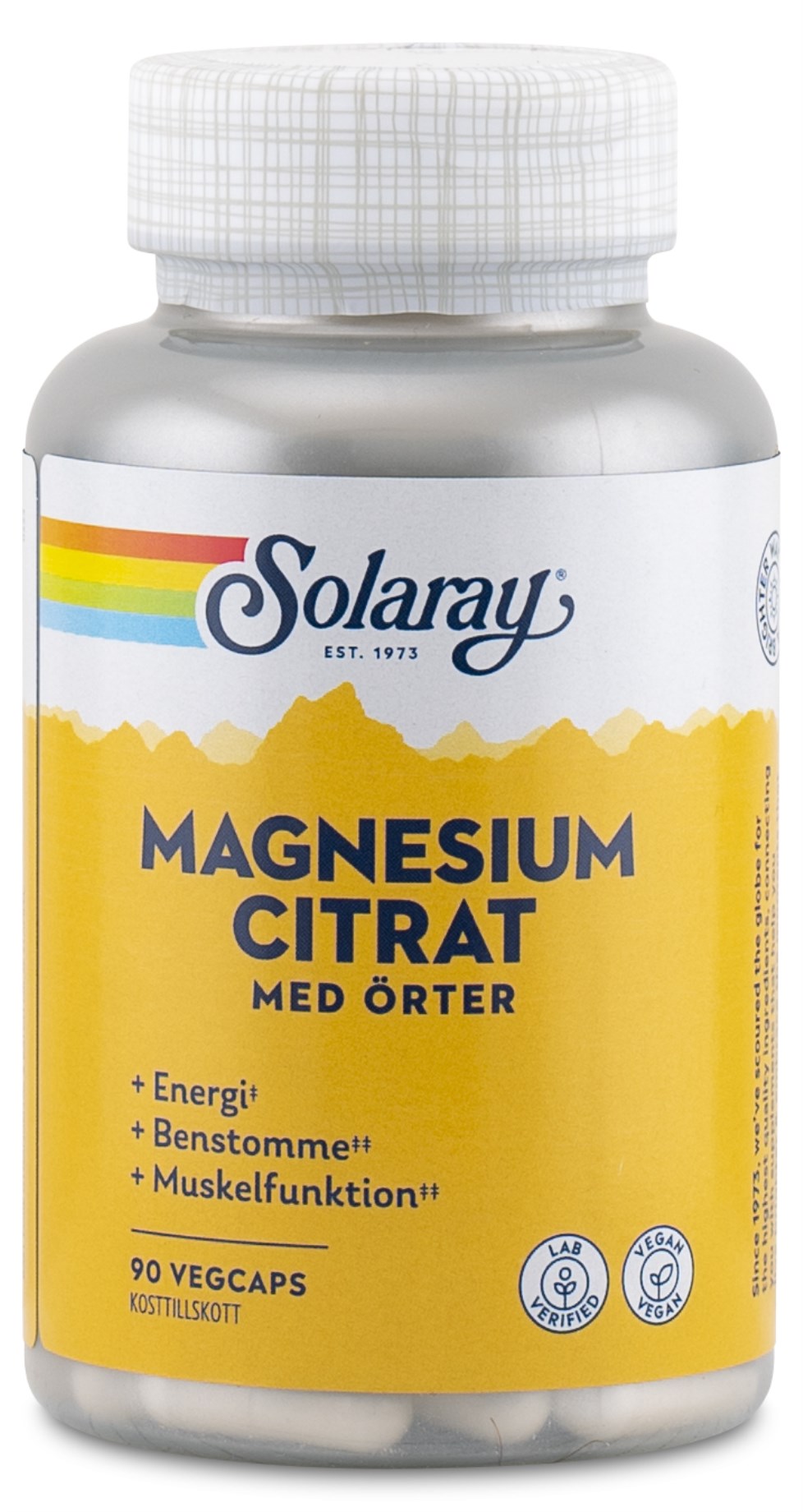 Solaray Magnesiumsitraatti on kapseleita, jotka sisältävät 133 mg magnesiumsitraattia per kapseli, yhdistettynä yrtteihin paremman imeytymisen saavuttamiseksi. Magnesiumm on yksi kehon merkittävimmistä mineraaleista ja sillä on monia erilaisia tehtäviä. Se edistää muun muassa solujen energiantuotantoa ja auttaa vähentämään väsymystä ja uupumusta. Lisäksi magnesium on tärkeä hermostolle ja säätelemällä kehon kalsiumin imeytymistä se auttaa ylläpitämään normaalia luuston terveyttä ja lihasten toimintaa. Solaray Magnesiumsitraatti käyttää hienoa jauhetta kapseleissaan hellävaraiseen ja tehokkaaseen imeytymiseen.