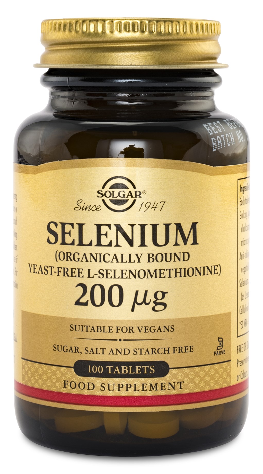 • Solgars Selenium sisältää 200 mcg seleeniä tablettia kohden ja se on hiivaton