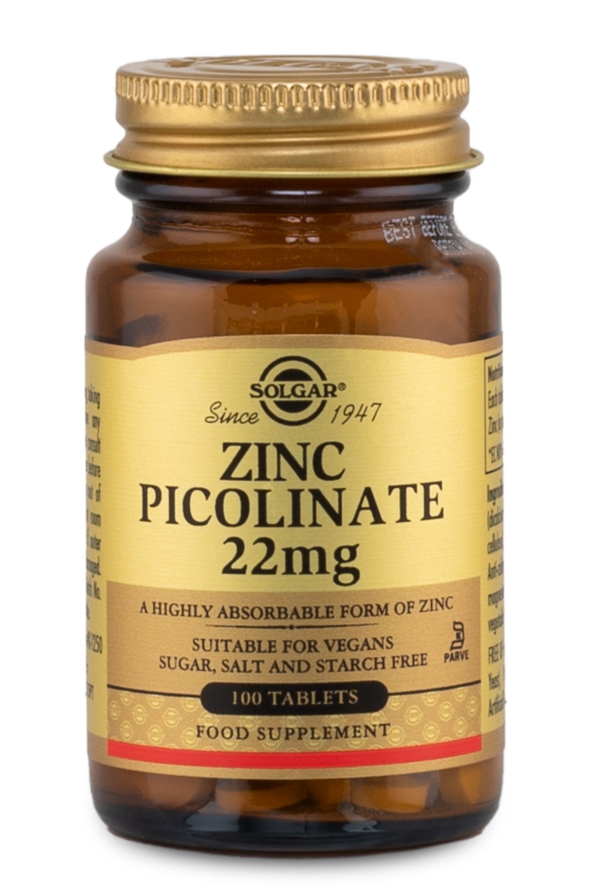 Solgar Sinkkipikolinaatti sisältää sinkkipikolinaattia, jossa on 22 mg sinkkiä per tabletti. Sinkki toimii antioksidanttina, joka suojaa kehon soluja oksidatiiviselta stressiltä, ja osallistuu hormonien säätelyyn. Sinkkipikolinaatti on kelaattimuotoinen sinkki, jossa mineraali on sitoutunut aminohappo pikoliinihappoon, mikä takaa parhaan mahdollisen imeytymisen elimistöön. Käytä Solgar Sinkkipikolinaattia päivittäisenä lisäravinteena varmistaaksesi tämän mineraalin saannin.