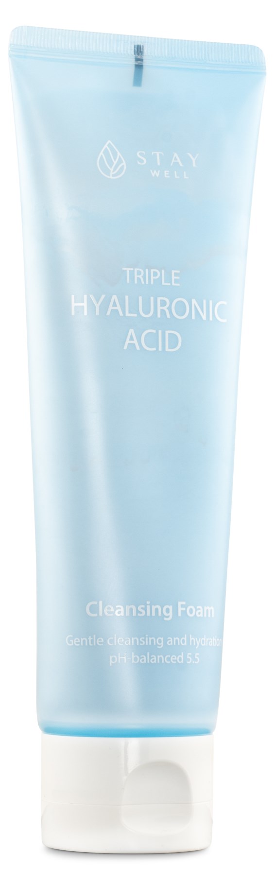 StayWell Triple Hyaluronic Acid -puhdistusvaahto on hellävarainen ja kosteuttava kasvojenpuhdistus sinulle, jolla on kuiva iho. Hyaluronihapon ansiosta se kosteuttaa voimakkaasti samalla kun se säilyttää ihon hyvän pH-tasapainon (5.5). Huolehdi itsestäsi StayWell Triple Hyaluronic Acid -puhdistusvaahdon avulla!