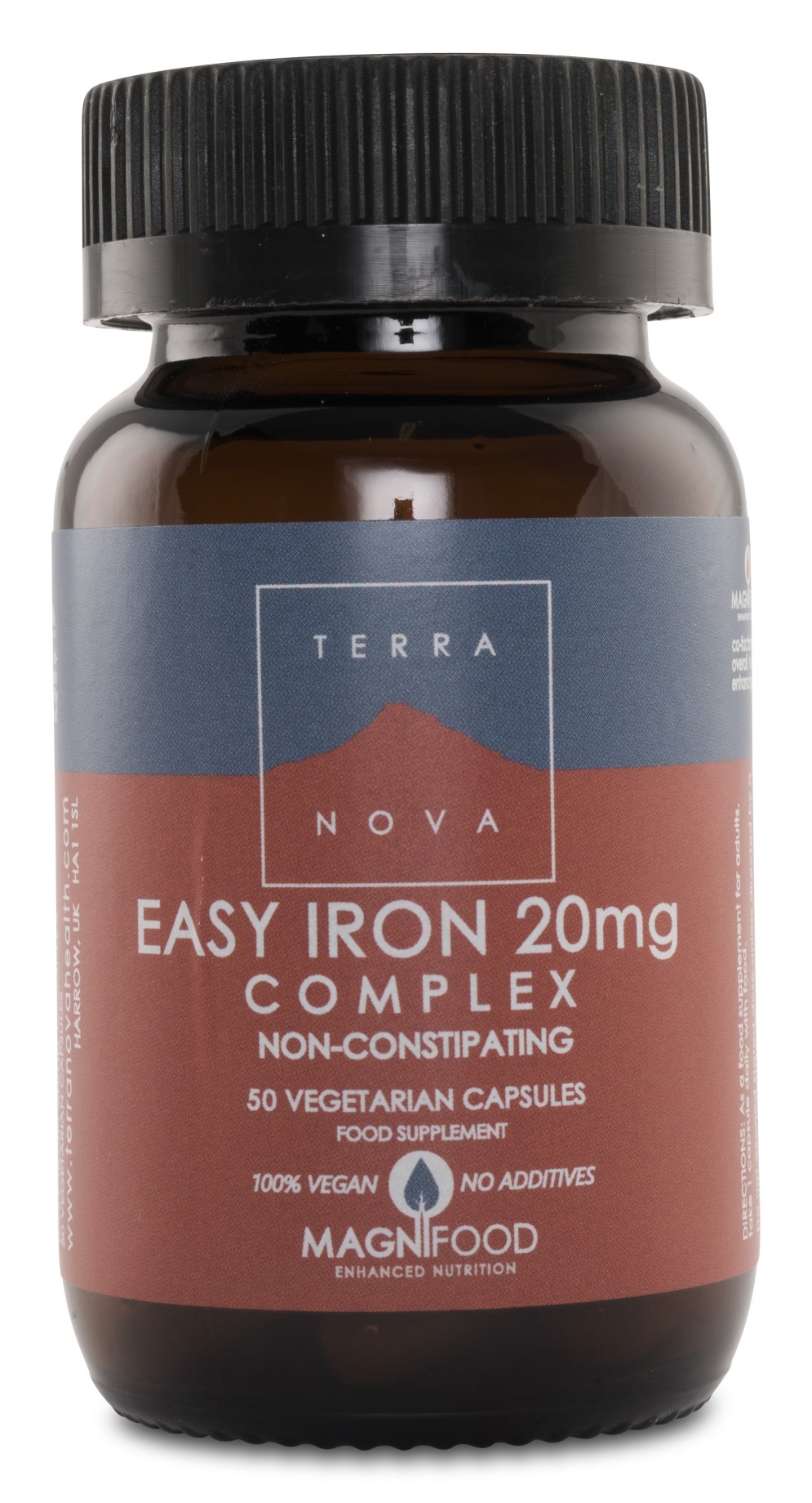 Terranova Rauta (Easy Iron 20 mg Complex) on rautalisä kapselimuodossa, joka sisältää aminohappokelatoitua rautaa, mikä on hellävaraisempi vatsalle. Terranova Rauta on myös vahvistettu Terranovan ainutlaatuisella Magnifood® Complexilla paremman imeytymisen vuoksi. Lisäksi tuotteeseen on sisällytetty stabiloitua riisinleseitä, sekä acai-marjaa, joka sisältää E-vitamiinia ja kompensoi raudan E-vitamiiniin kohdistamaa oksidatiivista vaikutusta, sekä vihreää ohranorasta avuksi hemoglobiinin muodostamisessa.