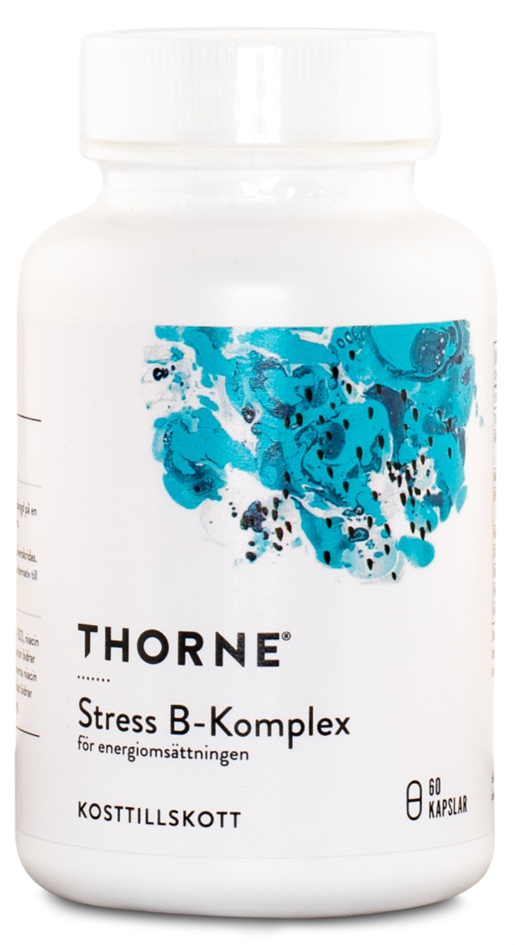 Thorne Research Stress B-Complex on kapseleita, jotka sisältävät kaikkia vesiliukoisia B-vitamiineja ja ylimääräisen tiivistetyn annoksen vitamiini B5:ttä (pantoteenihappoa). Pantoteenihappo auttaa muun muassa vähentämään väsymystä ja uupumusta, edistää normaalia aineenvaihduntaa sekä normaalia henkistä suorituskykyä. Erityisesti vitamiini B5 on tärkeässä roolissa hiilihydraattien ja rasvojen muuttamisessa energiaksi kehossa. Thorne Research Stress B-Complex sisältää 250 milligrammaa helposti imeytyvää pantoteenihappoa kapselia kohti. Pantoteenihapon lisäksi kapselit sisältävät myös biotiinia, joka edistää hiusten normaalia laatua, vitamiini B12:ta, joka edistää normaalia energian aineenvaihduntaa ja vitamiini B3:sta (niasiinia).
