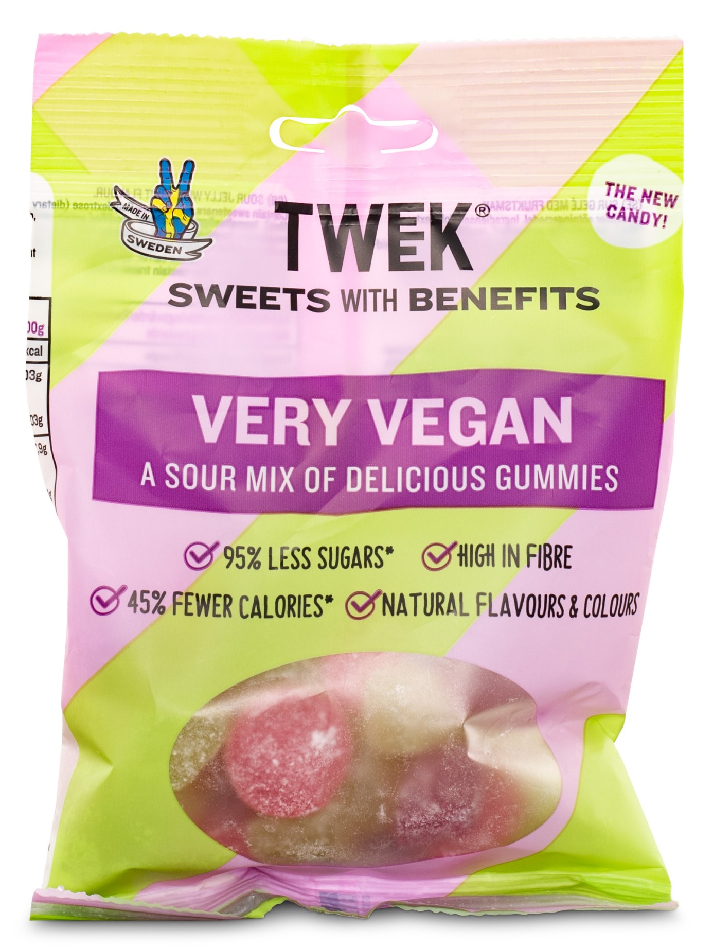 Tweek Gummies Vegan on vegaaninen karkki, jossa on kirpeä makeinen ihanalla hedelmän maulla. Karkki sisältää luonnollisia värejä ja aromeja 95 % vähemmän sokeria. Tweek on täydellinen, kun haluat hemmotella itseäsi jollakin hyvällä, mutta haluat vähemmän sokeria ja vähemmän kaloreita.
