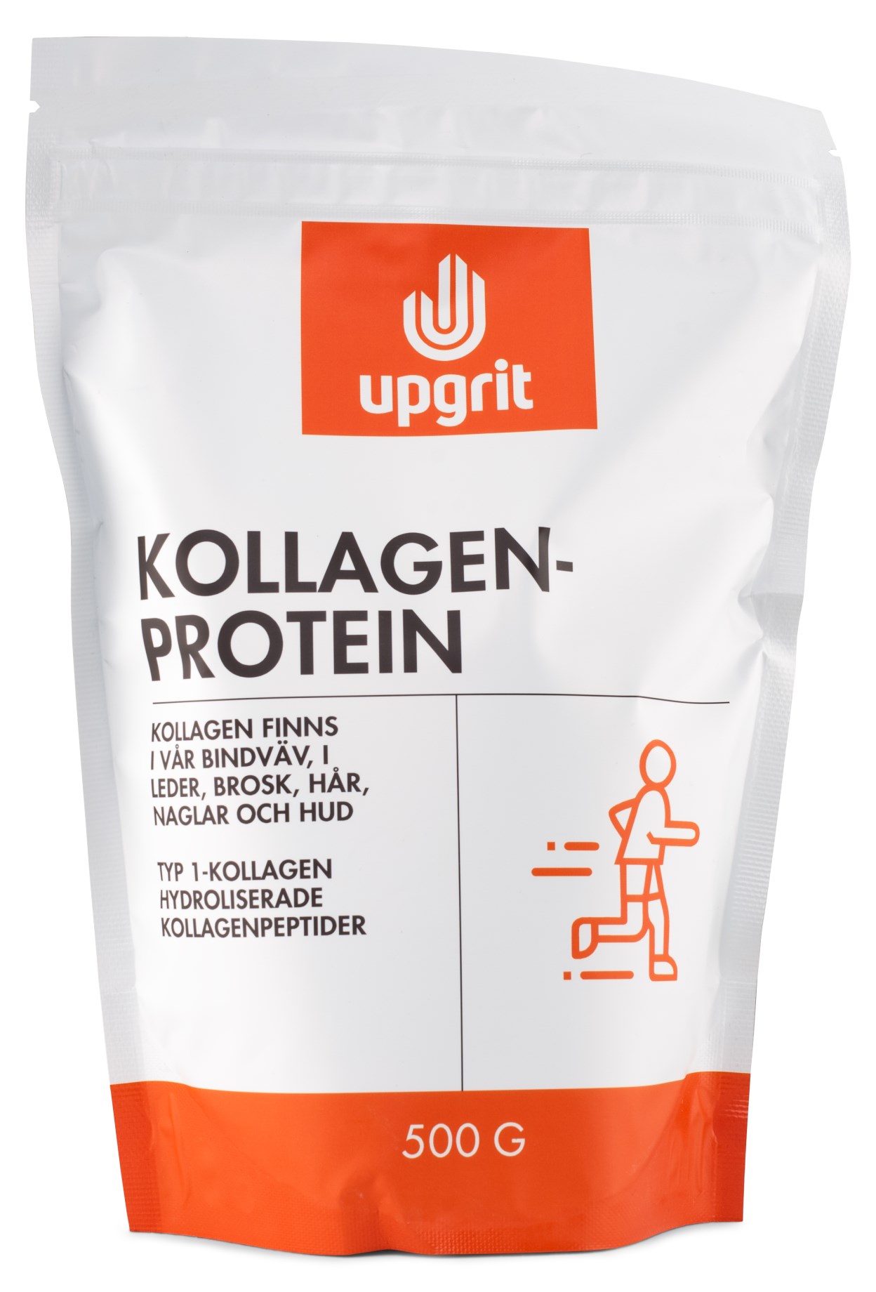 Upgrit Kollageeniproteiini on puhdasta kollageeniproteiinia, laidunnettavilta lehmiltä. Proteiini on rikas glysiini-, proliini- ja hydroksiprolinipitoisuuden suhteen, kolme aminohappoa, joita kehomme käyttää oman kollageenimme tuotannossa. Kollageeni löytyy nivelistä ja nivelrustosta, ihosta, hiuksista ja kynsistä, mutta kehomme tuottama määrä vähenee iän myötä. Upgrit:in kollageeniproteiini on korkealaatuista ja tulee laidunnettavilta lehmiltä. Proteiinilla on neutraali maku ja se sopii siksi täydellisesti sekoitettavaksi smoothieisiin, kahviin, leivontaan tai keittoihin. Se sekoittuu helposti sekä kylmiin että kuumiin juomiin.