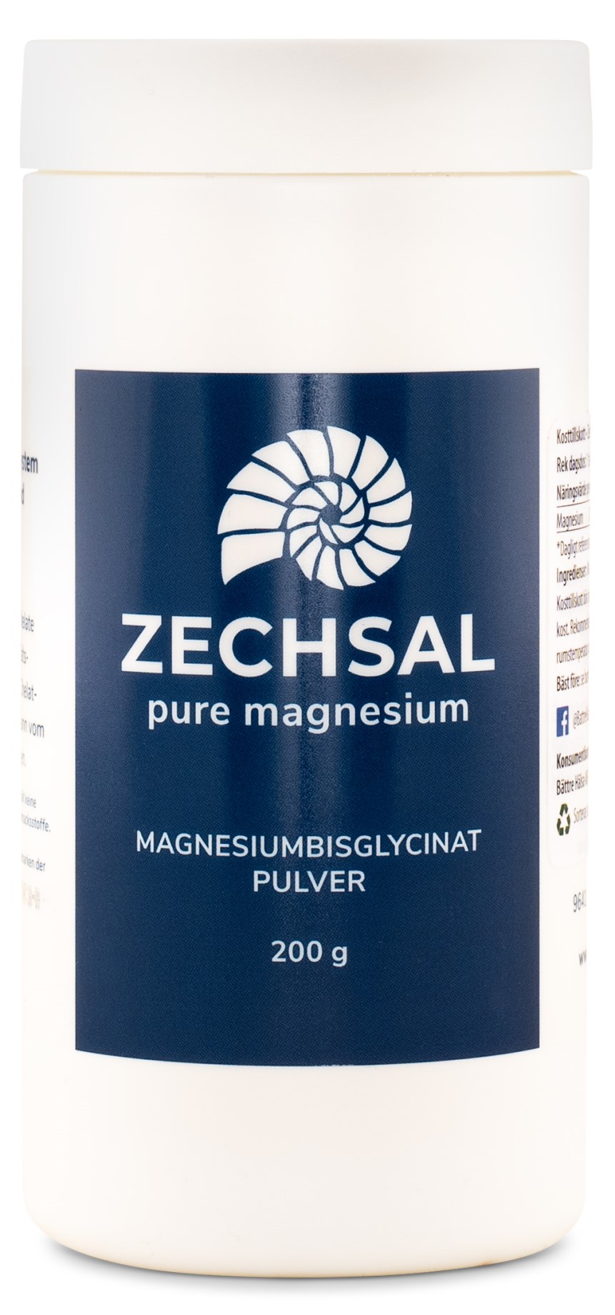 Zechsal Magnesium Bisglysinaatti on jauhe, joka sisältää magnesiumbisglysinaattia. Magnesiumbisglysinaatti on orgaaninen magnesiummuoto, joka koostuu magnesiumista sidottuna aminohappoon. Tämä yhdistelmä mahdollistaa sen, että keho voi helposti omaksua ja hyödyntää magnesiumia tehokkaasti. Magnesiumilla on useita tehtäviä kehossa, muun muassa se edistää väsymyksen ja uupumuksen vähenemistä ja hermoston normaalin toiminnan säilymistä. Juuri magnesiumbisglysinaatilla on se etu, että se voi myös tavoittaa aivot, jossa sillä voi olla rentouttava vaikutus. Zechsal Magnesium Bisglysinaatti on helppo annostella ja ottaa, päivittäinen annos on 1 tl, jonka voit sekoittaa haluamaasi juomaan.